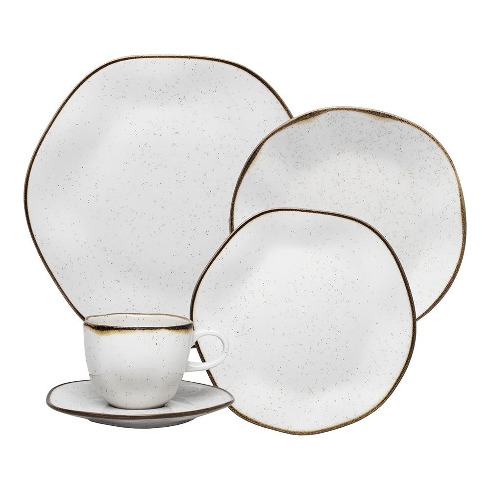 Aparelho de Jantar e Chá Porcelana 20 peças Ryo Maresia Jogo de Pratos e Xícaras Oxford