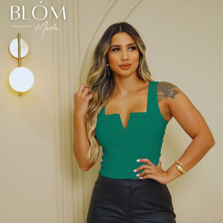 Blusa Cropped Feminino Alane decote em V alça grossa com bojo e zíper