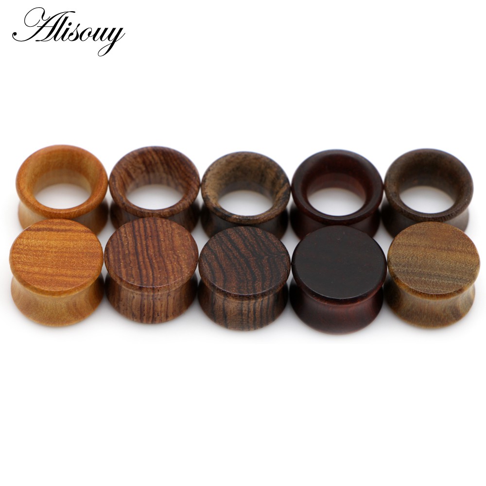 Alisouy 2pçs Tampões De Orelha De Madeira Flesh Túneis De Sela Medidores 8-25mm Sólidos Homens Ocos Mulheres Expansor Jóias De Perfuração Corporal