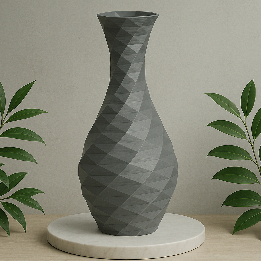 Vaso Decorativo Moderno em Impressão 3D –Design Geométrico | PLA | 15cm – Branco, Preto ou Cinza
