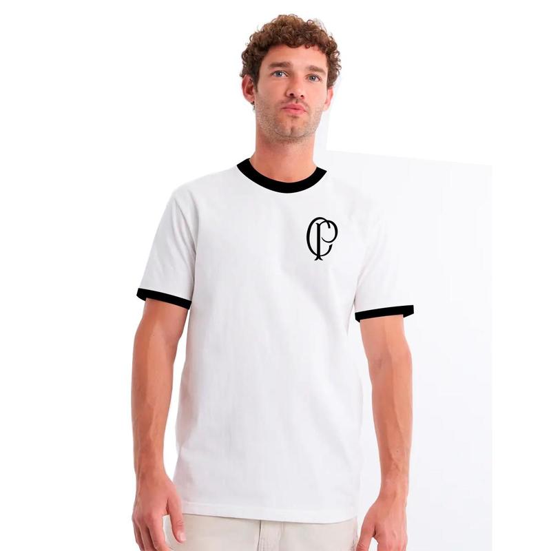 Camiseta Casual Corinthians Retrô Masculina Branca ou Preta