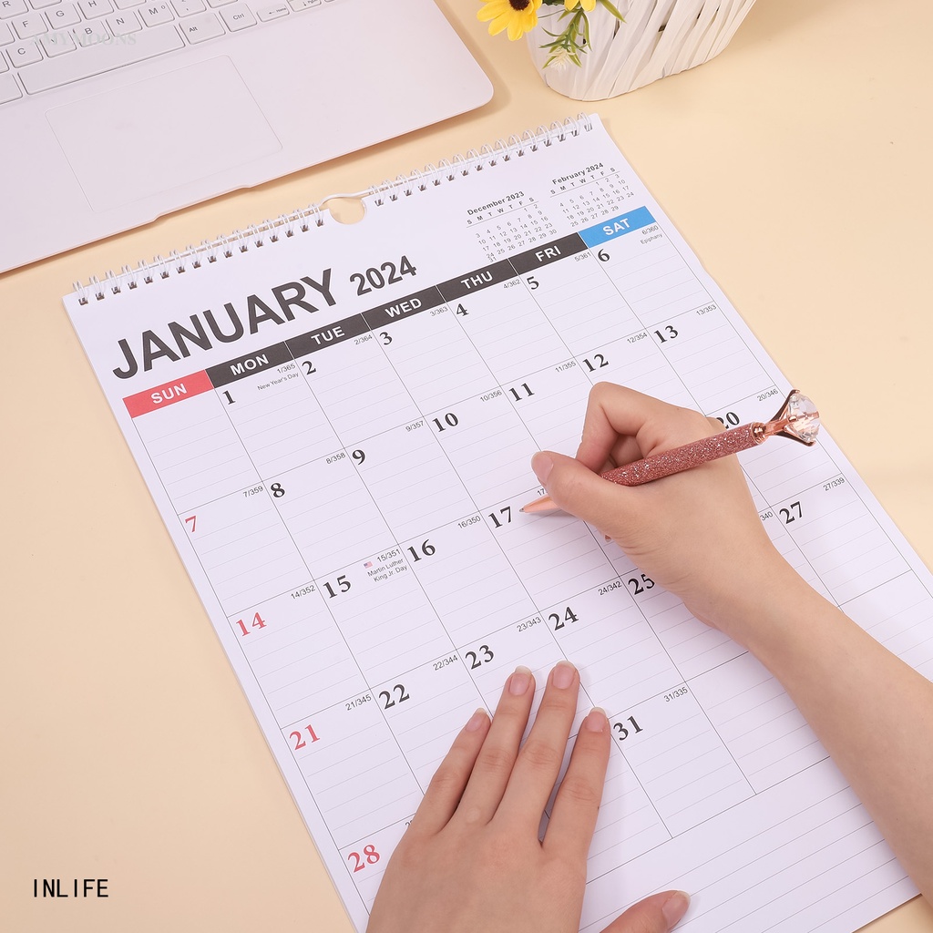 INLIFE 2024 Calendário De Parede Inglês Desenho E Impressão De