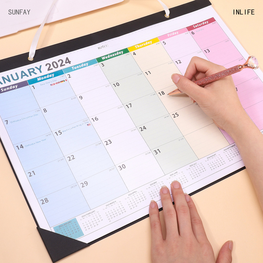 INLIFE 2024-2025 Calendário De Parede Em Inglês Ins Style Mesa Papel Simples Rasgado À Mão