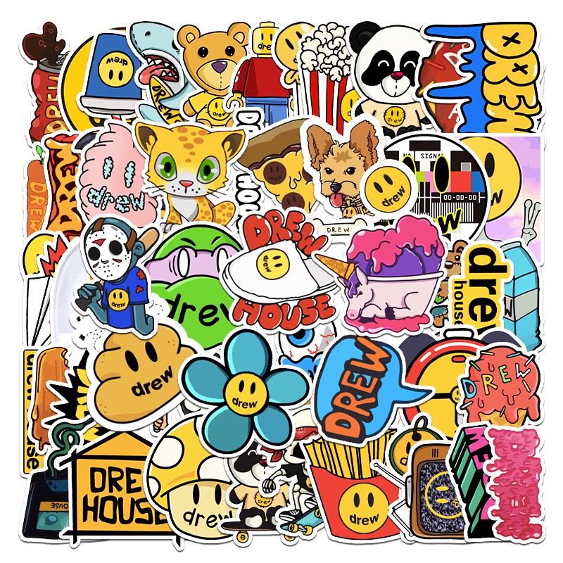50 Pcs Drew Casa Bonito Dos Desenhos Animados Moda Impermeável Sticker Skateboard Snowboard Retro Graffiti Adesivo De Vinil Adesivo Notebook