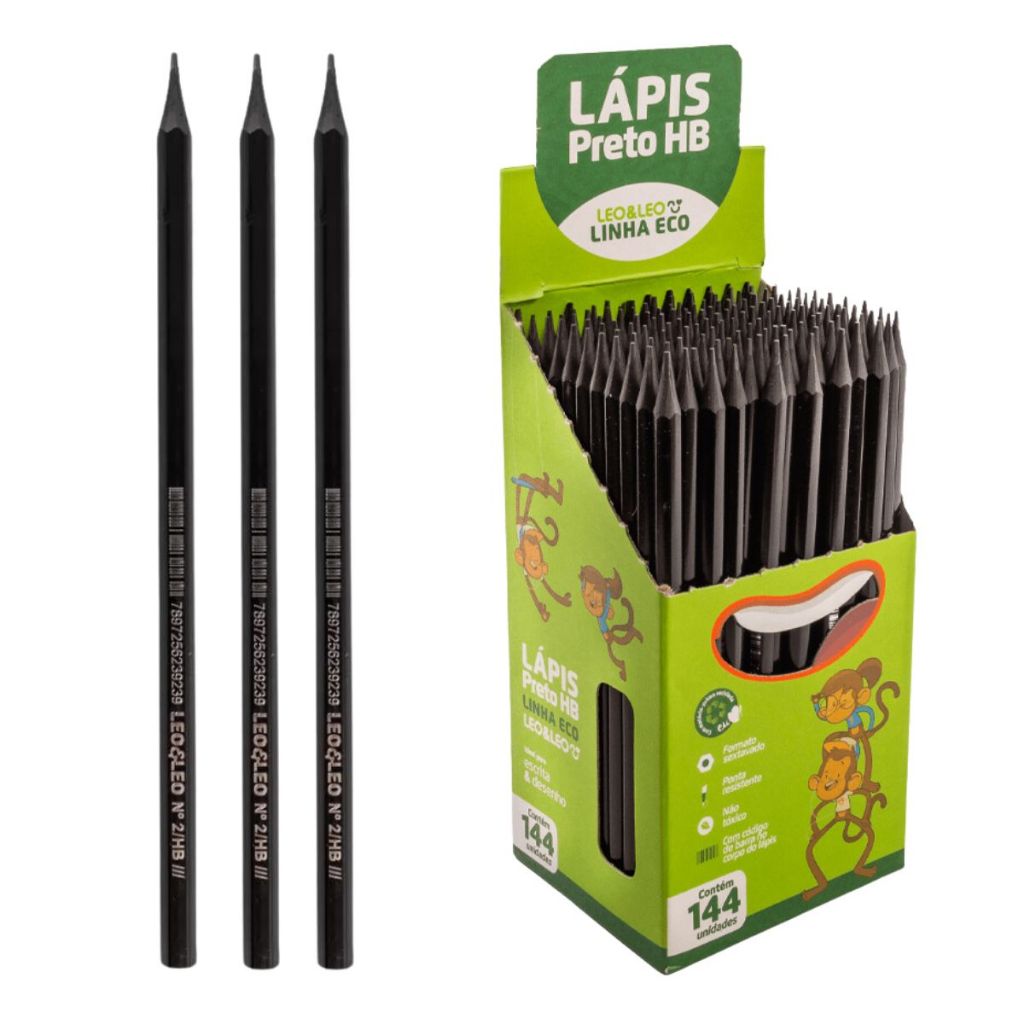 Kit 50 Lapis de escrever resina sextavado ecológico preto barato atacado revenda material escolar