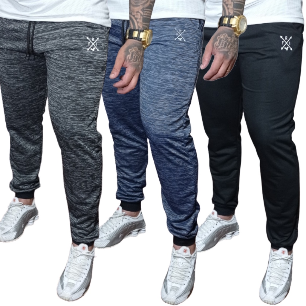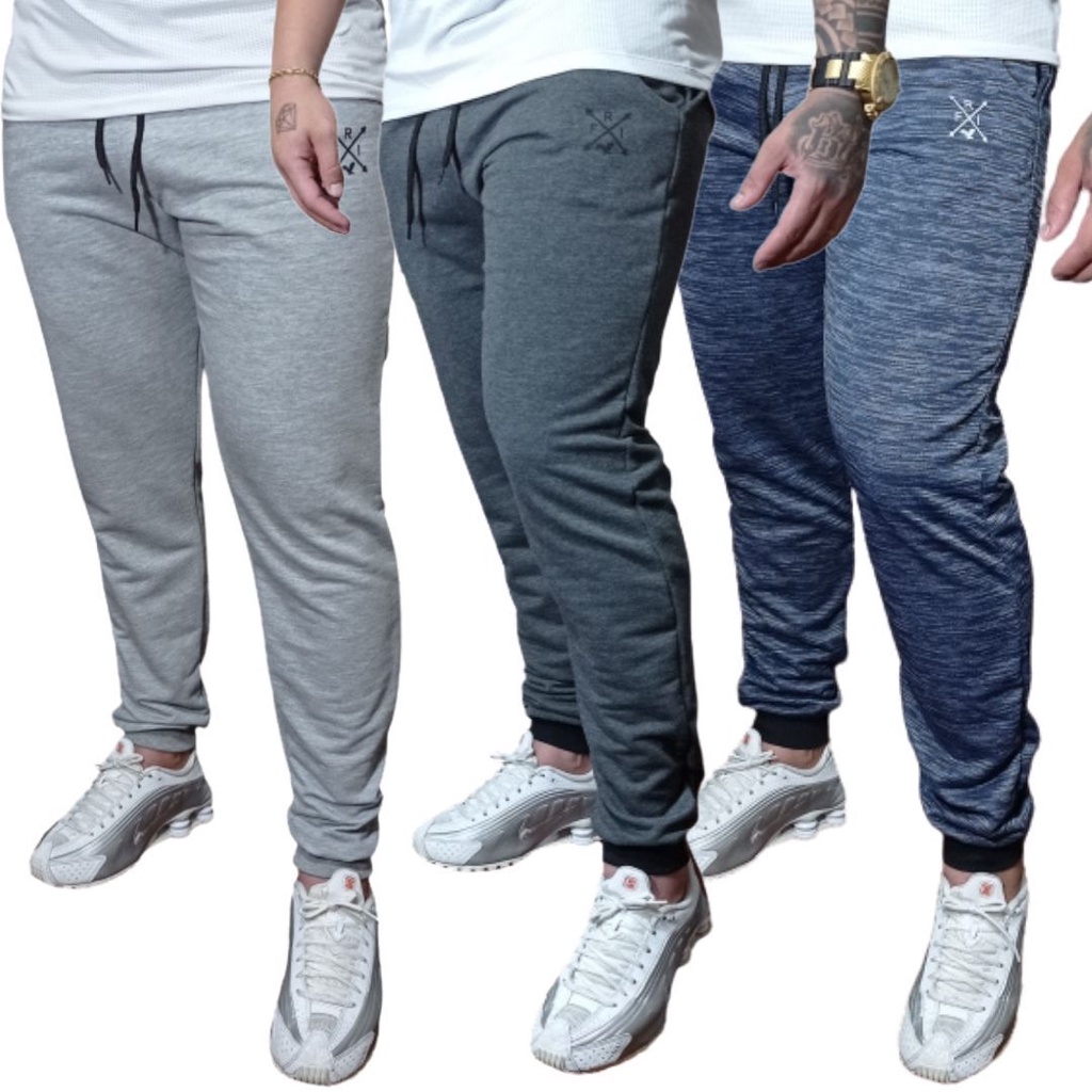 Kit 3 Calças Jogger Moletom Moletinho Slim Skinny Masculina Treino Dia a Dia Academia