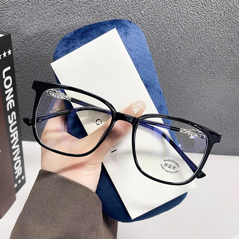 A Prova De Luz Azul Meia Moldura Diamante Incrustado Lente Plana 2022 Nova Personalidade Retrô Óptica Da Moda Armação De Óculos Pode Ser Equipada Com Miopia
