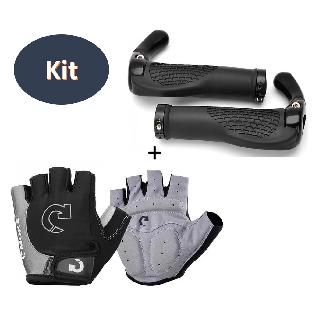 Kit Ciclismo Luva Para Ciclista Meio Dedo Com Gel + Par Manopla Anatomica Trava Bar End Bicicleta Ciclismo Qualidade Conforto Bike Bicicleta