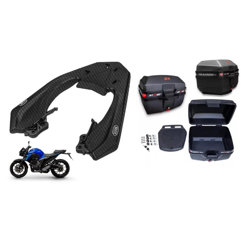 Kit Suporte de Bagageiro Scam + Bauleto Stoned 35L Yamaha Fz25 Fazer 250 2018 2019 2020 2021 2022 2023 2024 2025