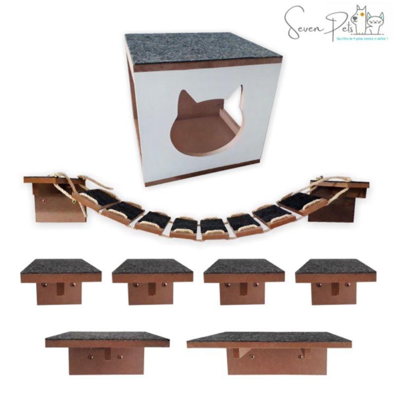 Kit Playground para Gatos Em Mdf Circuito de Parede para Gato 9 Peças Brinquedo de Gato Ponte Nicho Prateleiras Pra Gatos