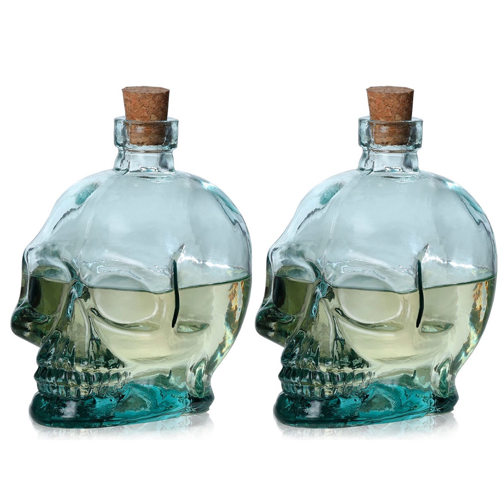 02 Moringa Garrafa Caveira Crânio 750ml de Vidro para Drinks Whisky Licor Vodka Bar