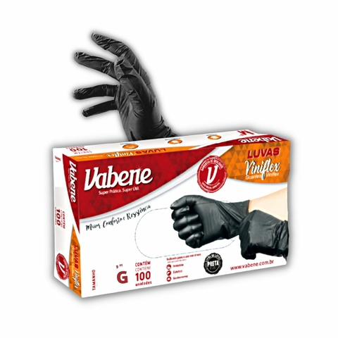 Luva Viniflex Preta Tamanho M / P / G descartável sem pó - Vabene - 100 unidades