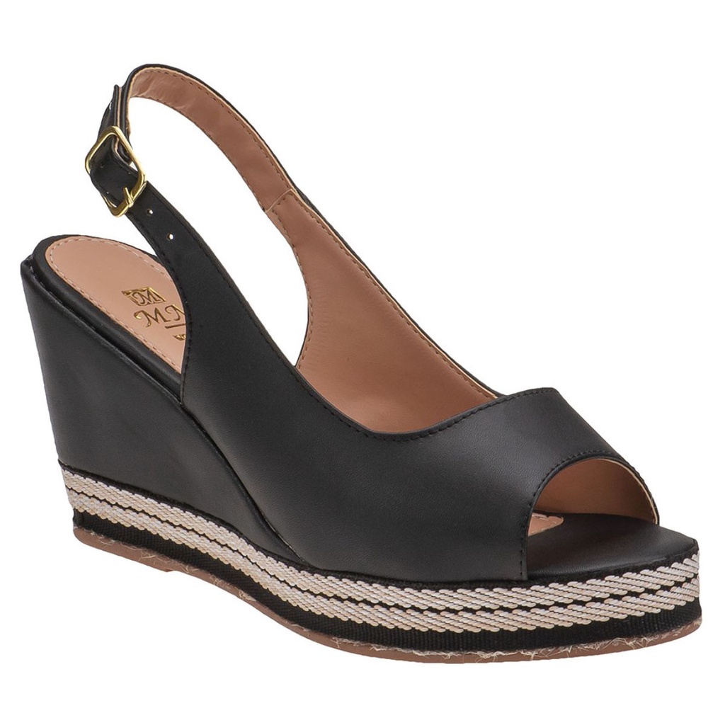 Sandália Feminina Anabela Plataforma Salto Médio Moda Sapato PRETO