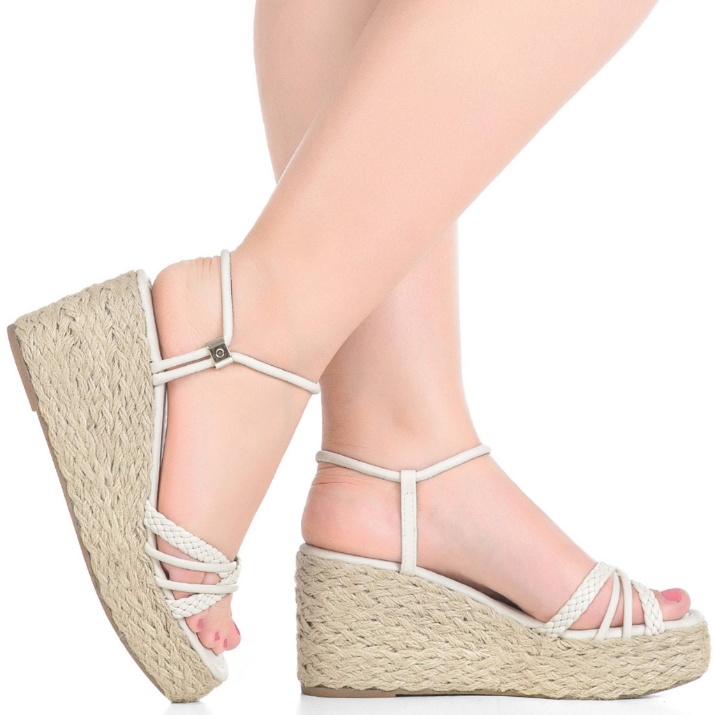 Sandália Anabela Feminina CM Calçados Salto Plataforma Juta Nó Confort