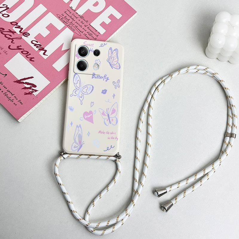 N ote 13 Linda Capa De Telefone De Silicone Com Cordão De Borboleta Para Xiaomi Redmi Note 13 13R 13Pro 12 11S 11Pro 13P
