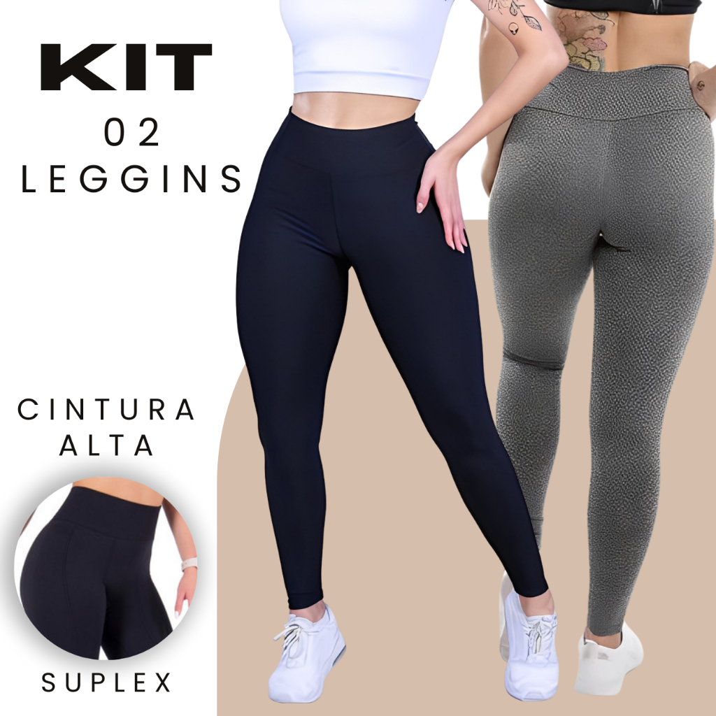 KIT 02 Calça Legging Cintura Alta Leg Suplex Grossa Levanta Bumbum Zero Transparência Fitness