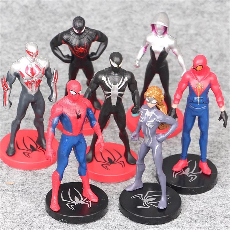 < Disponível > 7pçs / Conjunto Action Figure Pvc Capitão Marvel / Homem-Aranha / Brinquedo De Criança / Decoração De Bolo