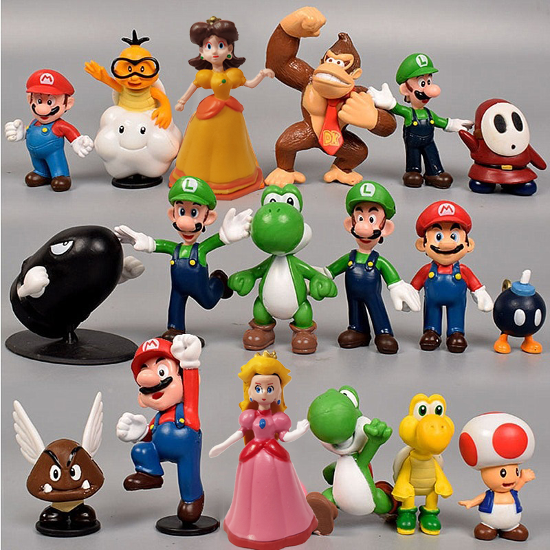 < Disponível > 18 Peças 10 6 Anime Super Mario Bros Figuras De Ação PVC Yoshi Pêssego Princesa Luigi Donkey Kong Bonecas