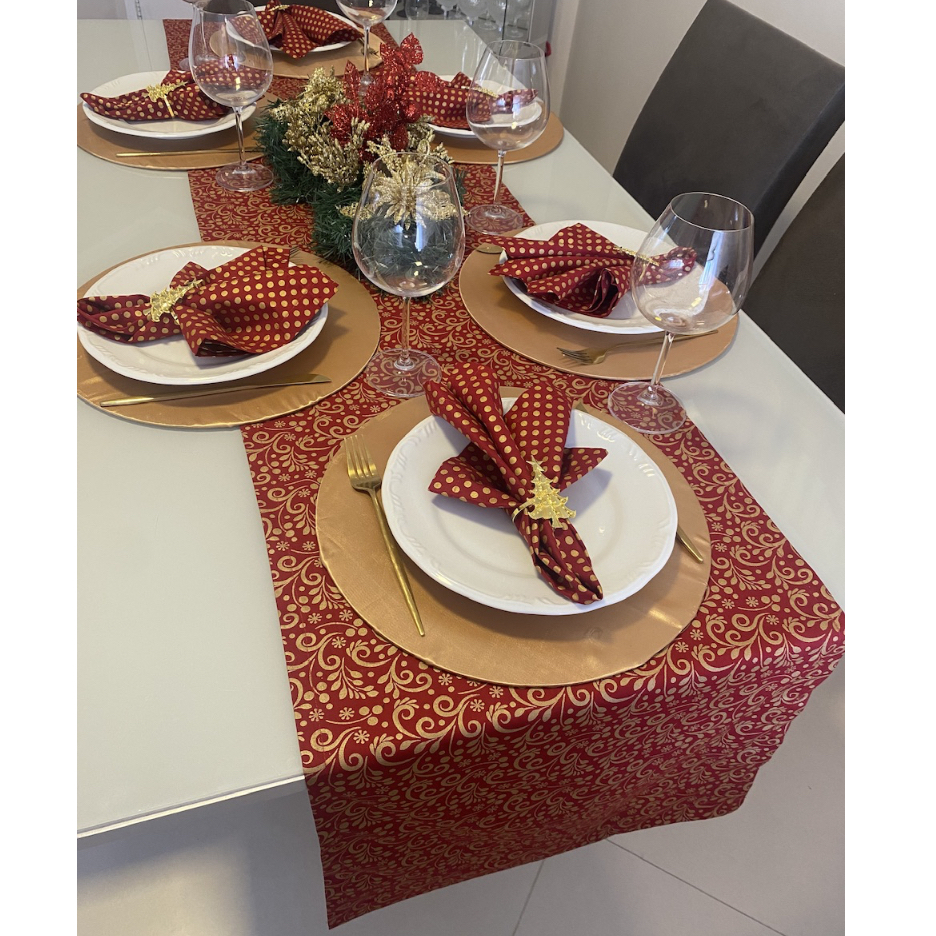 Trilho de mesa dourado com vermelho (caminho para mesa em tricoline 100% algodão cor vermelha) 1,80 m x 0,40