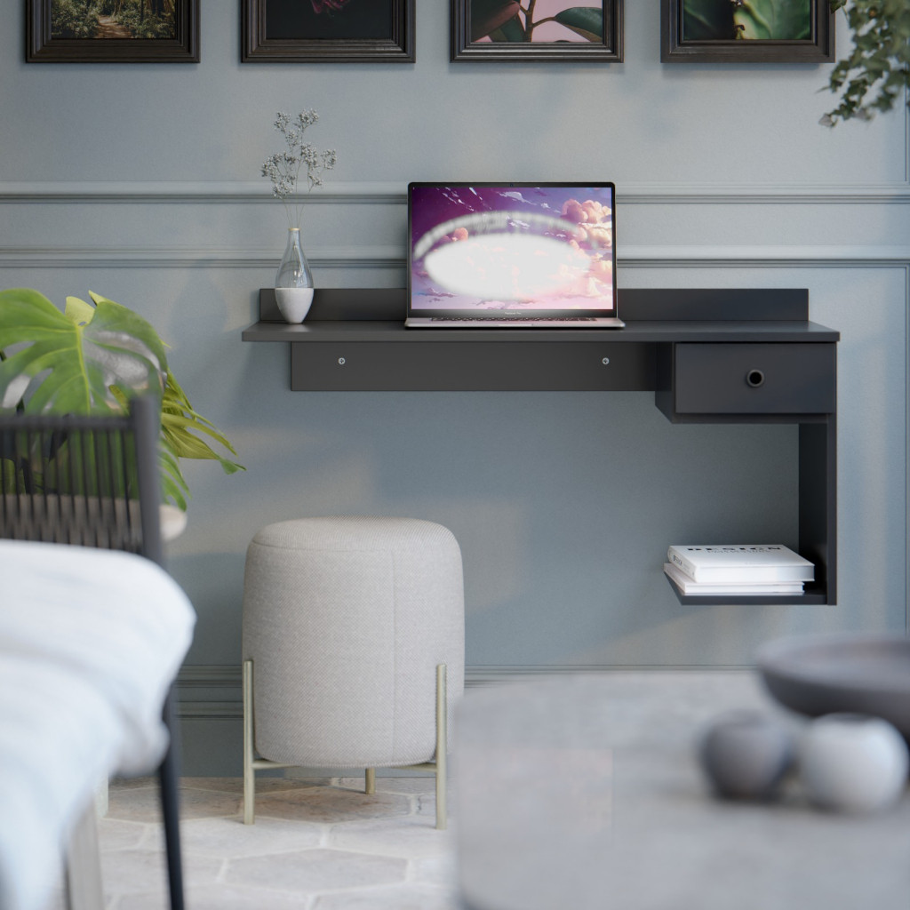 Mesa De Computador Suspensa Escrivaninha de Parede Para Notebook Cor Preta BMD - Manu Móveis