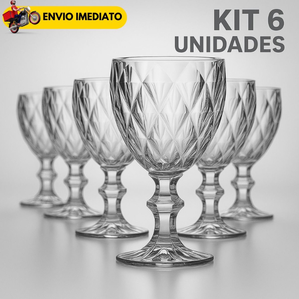 Jogo De Taça Diamante 260Ml De Vinho Água Vidro Kit 6 Unidades