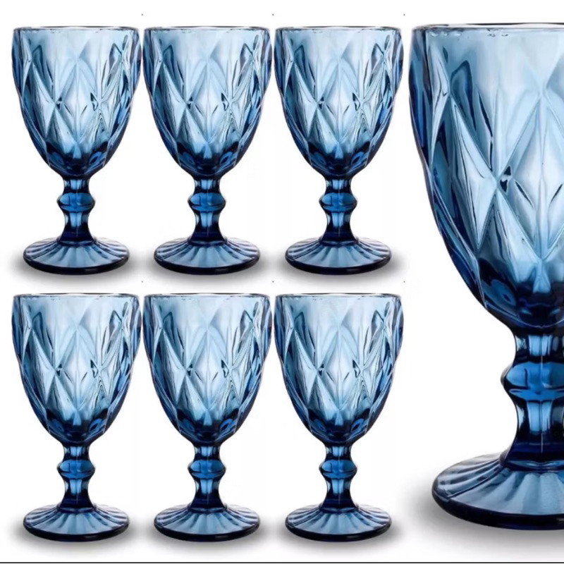 Jogo Kit 6 Taça Diamante Copo Vidro Azul Bico De Jaca 260ml