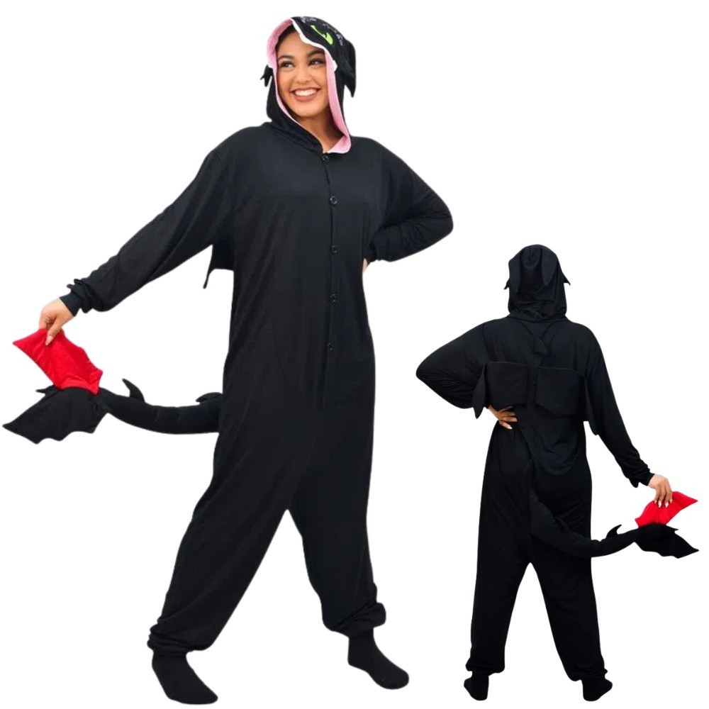 DRAGÃO FÚRIA DA NOITE BANGUELA PIJAMA FANTASIA KIGURUMI MACACÃO ROUPA COSPLAY ANIME FESTA