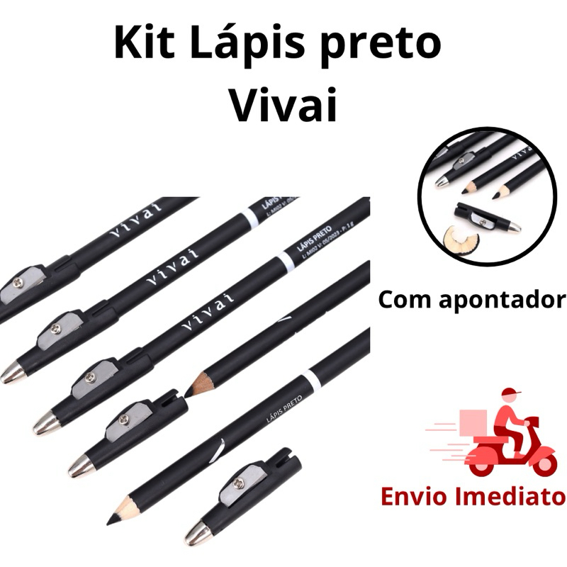 KIT 4 UNIDADES Lápis de Olho Preto Vivai com apontador lápis preto lapis unidade