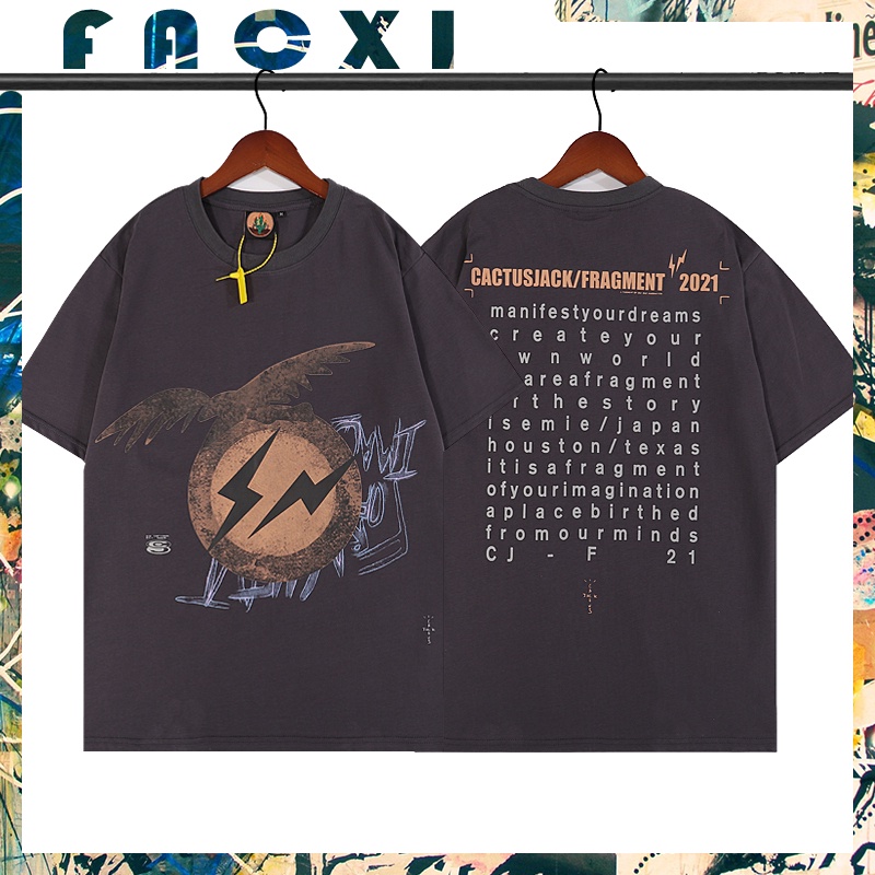 Cactus TRAVIS SCOTT Jack x FRAGMENT Camisa De Grandes Dimensões graphic tees Casal t shirt plus size De Manga Curta hiphop Camiseta oversized tee unisex Algodão Do vintage