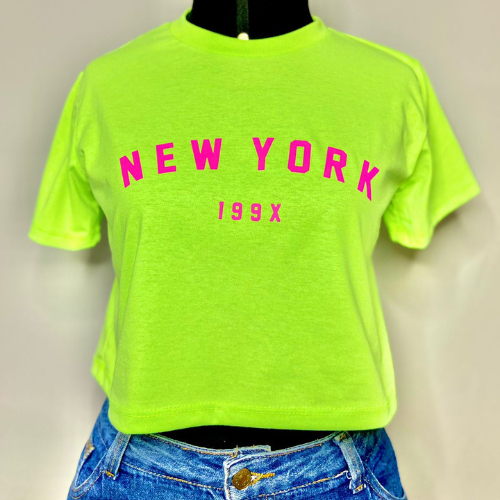 Cropped t-shirt camiseta verde limão manga curta new york 100% algodão camiseta soltinha curta verao promocao baby look top adulto juvenil