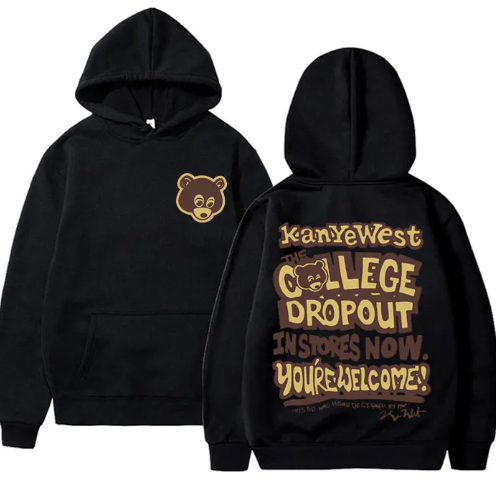 Rapper Kanye West College Dropout Música Álbum Urso Logotipo Estampa Camiseta Masculina Legal Homens Mulheres Hip Hop Preta Tamanho Grande
