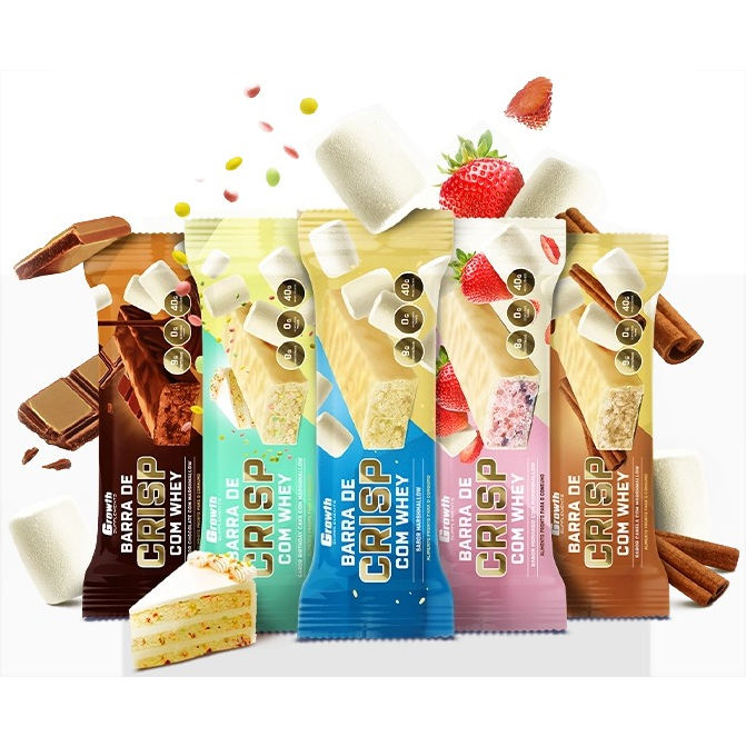 Barra de Proteína Crisp com Whey Protein - 480g - Growth Supplements