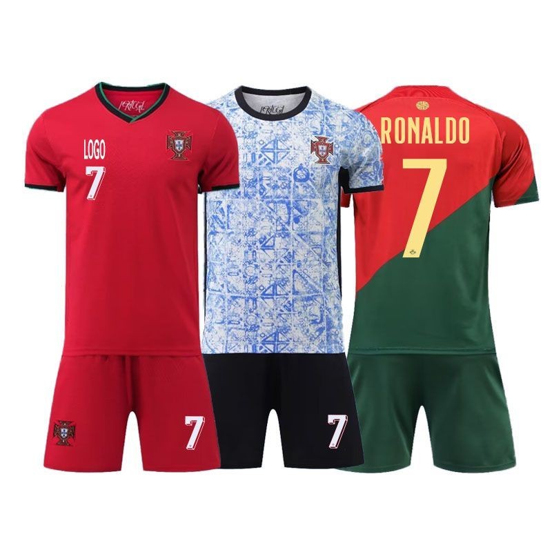 Camisa da Copa do Mundo Europeia Portugal Seleção No. 7 C Luo Camisa de Futebol Infantil Terno Uniforme de Equipe de Tre