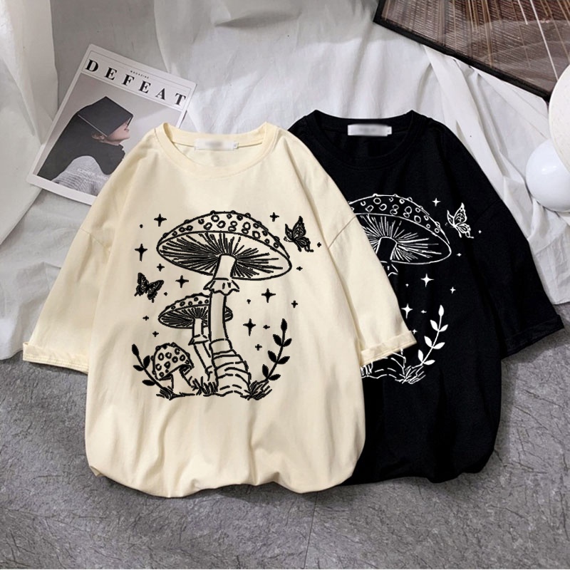 Harajuku Material Retro Cogumelo De Damasco Camiseta Fofa Gola O Casual Verão Plus Size Mulher 2021moda Roupa De Rua