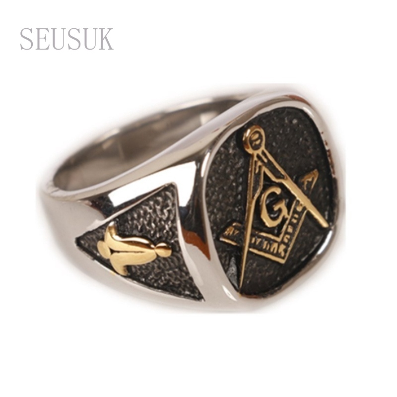 SEUSUK Anel De Faixa Maçônica Da Maçonaria De Aço Moda Masculina Para Jóias De
