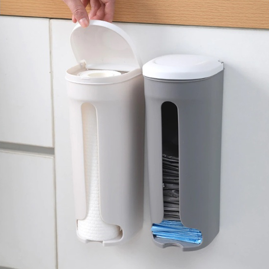 Puxa Saco com Adesivo Sem furos Cinza ou Branco Porta Sacola Dispenser Organizador Para Sacos Puxa Saco Organizador De Sacola Porta Papel Toalha Em Rolo