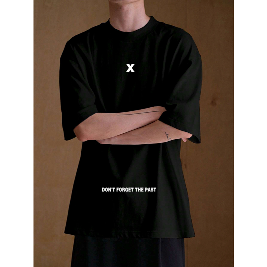 Camiseta Larga Masculina Estampa X Don't Forget The Past Estampada Frente Frase Projeto X Não Esqueça O Passado Lembranças T- Shirt Homem Oversized Life Style Blusa Manga Curta Ombro Caido Unissex