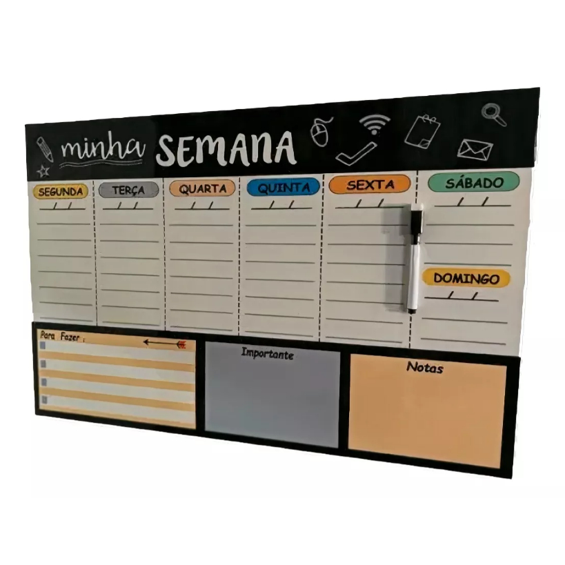 Quadro Lousa Planner Planejamento Diário Semanal Mensal De Parede Magnético Para Organização De Tarefas Atividades Rotina