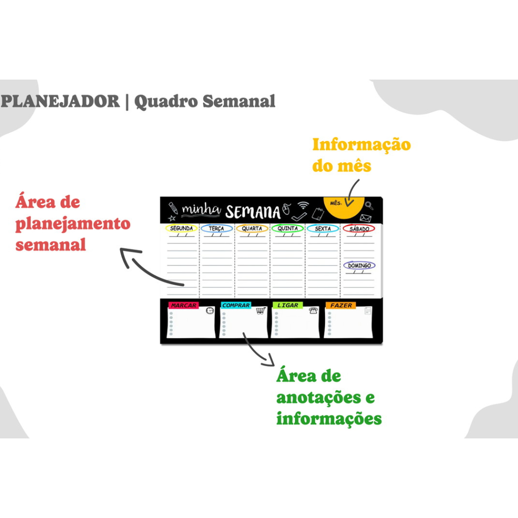 Quadro Lousa Planner Planejamento Semanal Mensal Agenda De Pendurar Na Parede Kit Papelaria Organização Tarefas Avisos Informações