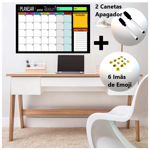 Quadro de Planejamento Mensal e Semanal, Planner, Quadro De Tarefas, Mural de Planejamento, Brinde Caneta Com Apagador e Imã, Vários Tamanhos