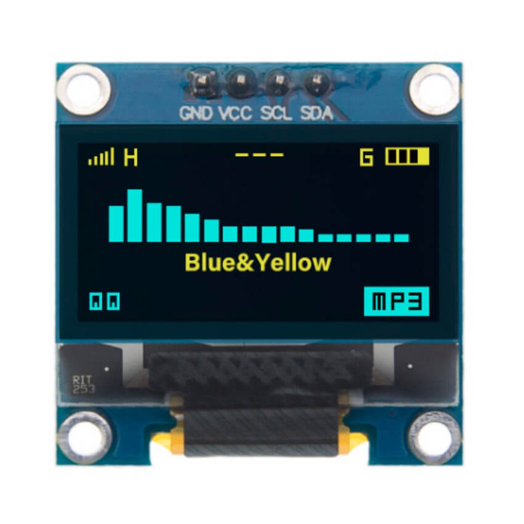 Display Oled 128x64 0.96 I2c Gráfico Arduíno Azul E Amarelo Esp8266, Esp32, Arduíno, Arduino Mega, Arduino Uno, W5100, Hc-05, Hc-06, Kit de Arduino, Arduino Uno R3, Sg90s, Arduino Completo