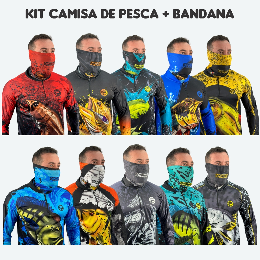 Kit Camisa Camiseta De Pesca + Bandana C/ Proteção Térmica Uv50 Dryfit