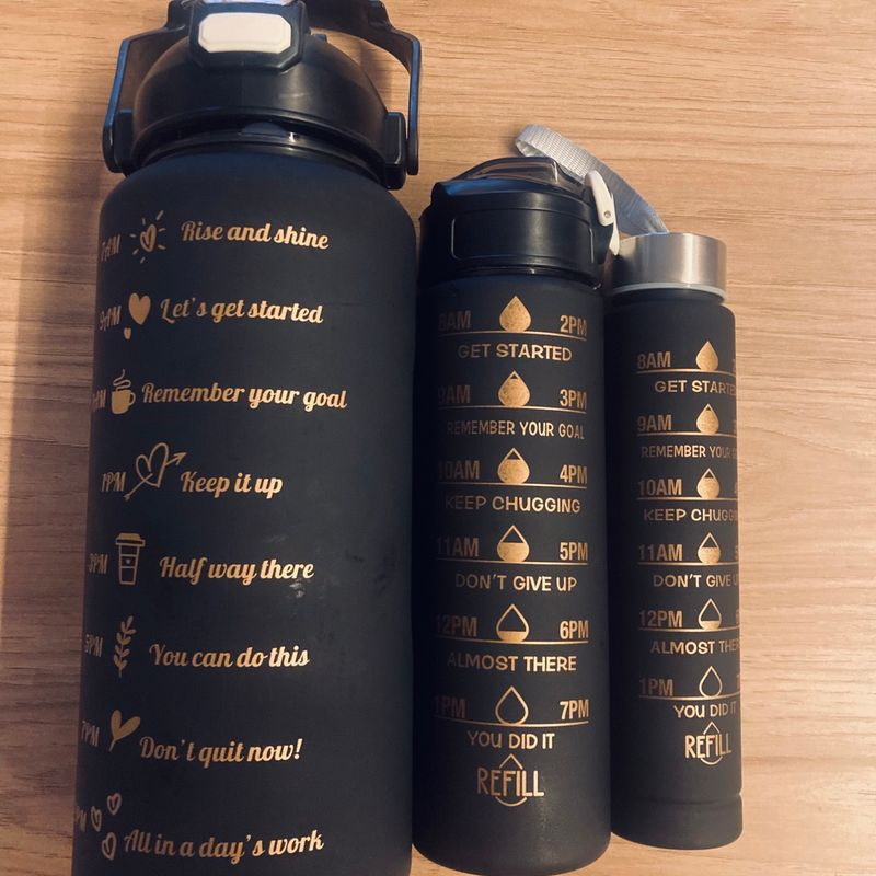 Kit com 3 Garrafas Garrafa De Água Squeeze Academia Com 2L e 900ml e 300ml Portátil Adesivos