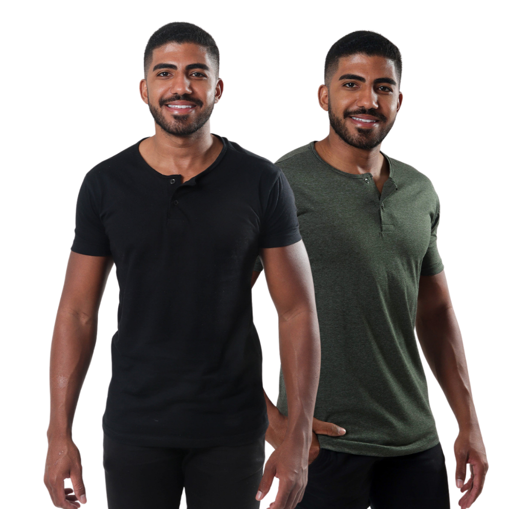 Kit 2 Camiseta Henley Masculina Slim Fit 2 Botões Algodão Canelado