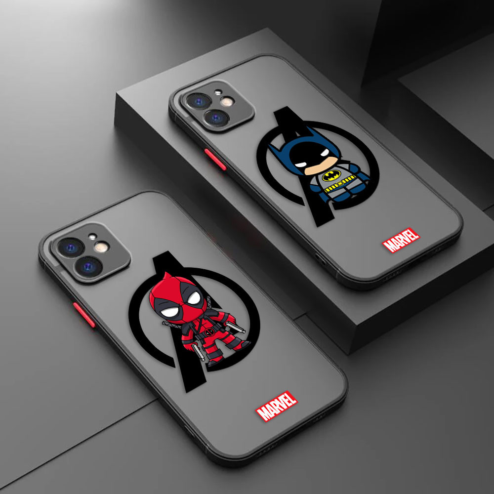 Desenhos Animados Deadpool B-Batman Marvel Avengers A Logo Skin Feeling Capa De Telefone Fosca À Prova De Choque Para Apple iPhone 16 Pro Max 15 14 13 12 11 X XS XR 8 7 6 S Plus Mini 5G