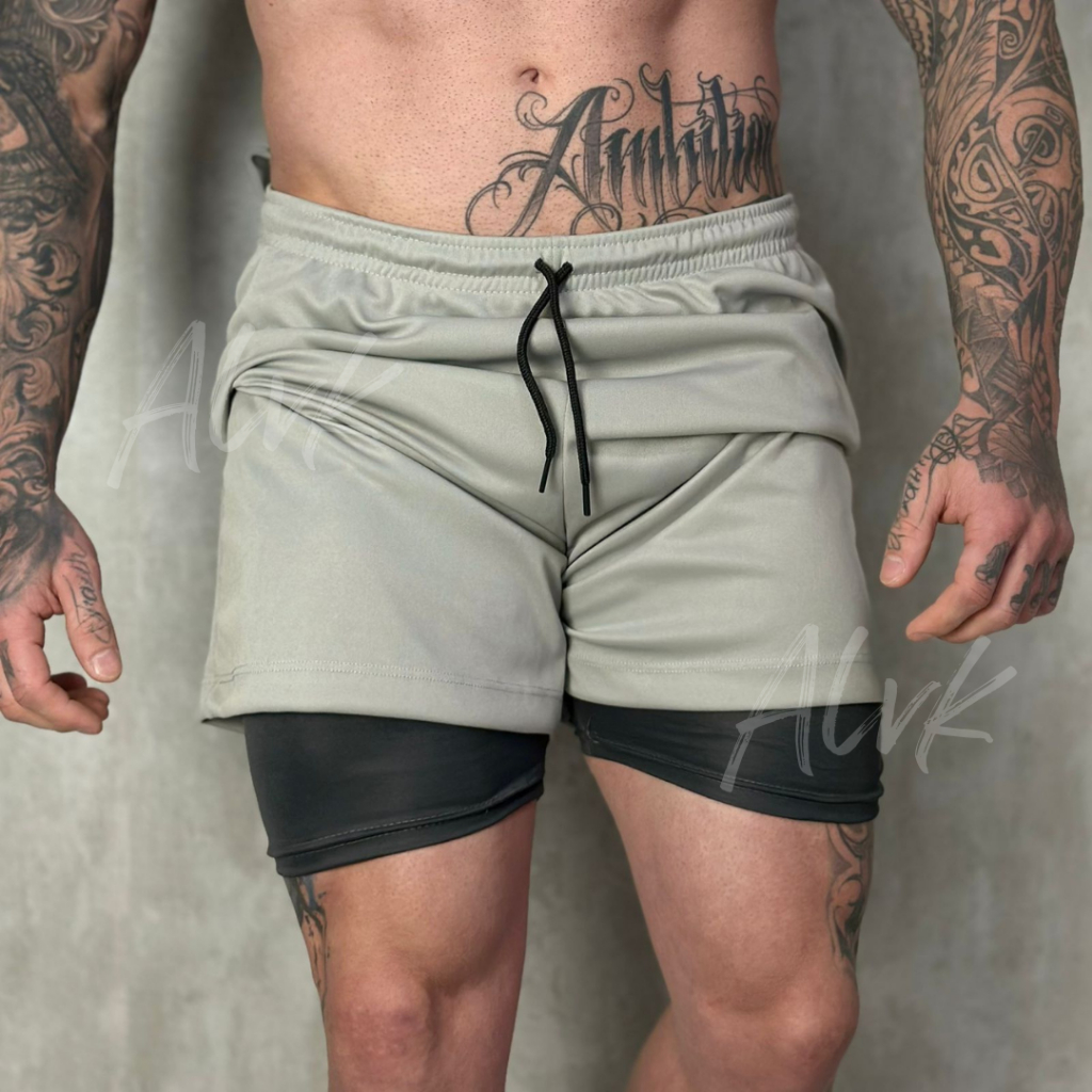Short Masculino Fitness 2 Em 1 - Dry Fit E Térmico De Compressão - Esportivo Para Corrida E Treino