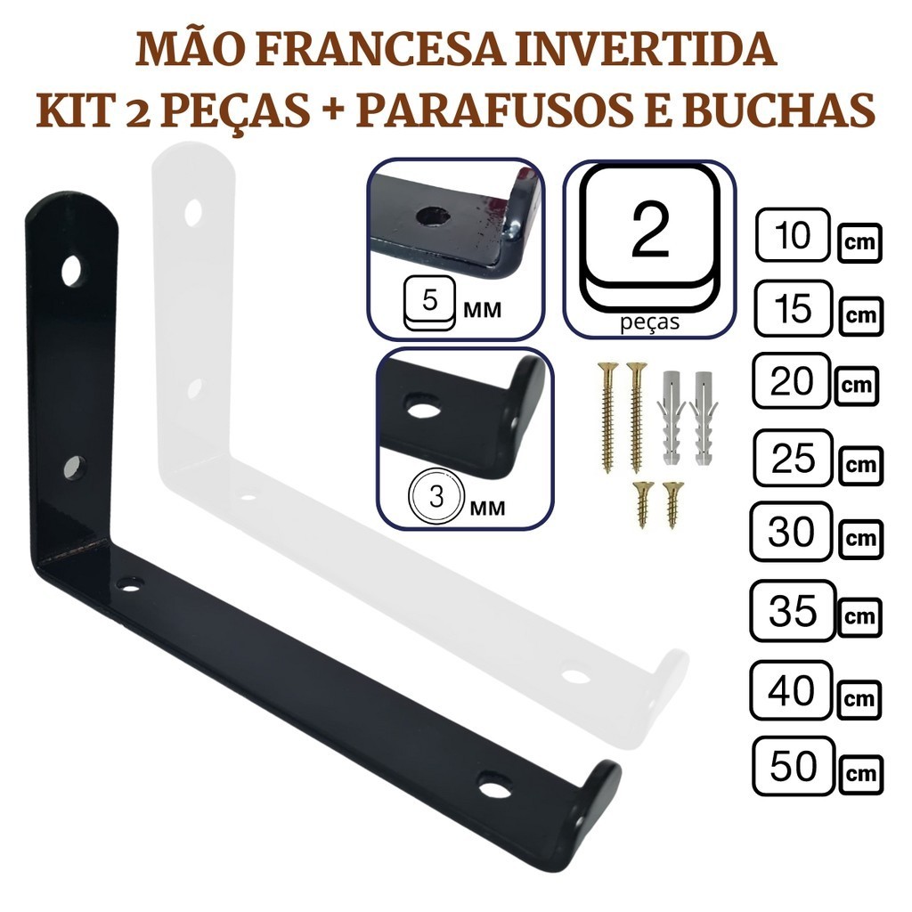Mão Francesa Invertida 2 Peças Suporte Prateleira Industrial Cantoneira Gancho Parede Branca Preta
