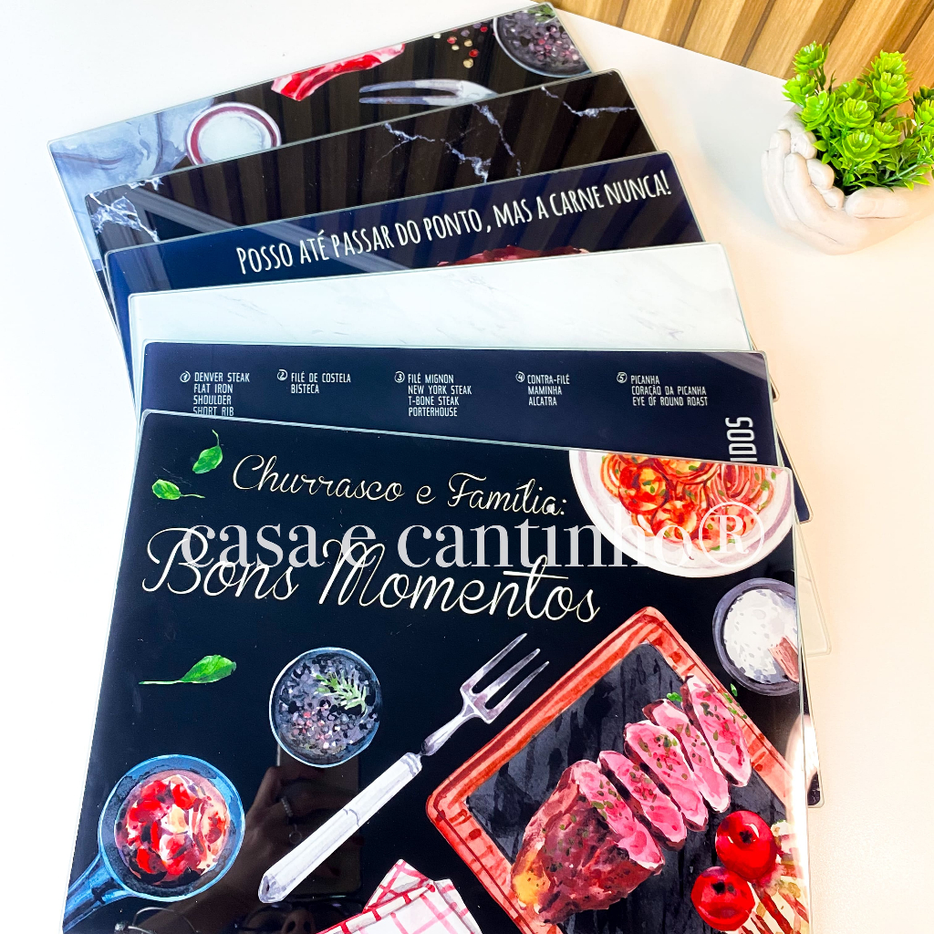 Tábua de Corte Vidro Para Carne Frios Frutas Nao Risca Vidro Temperado 35x25cm