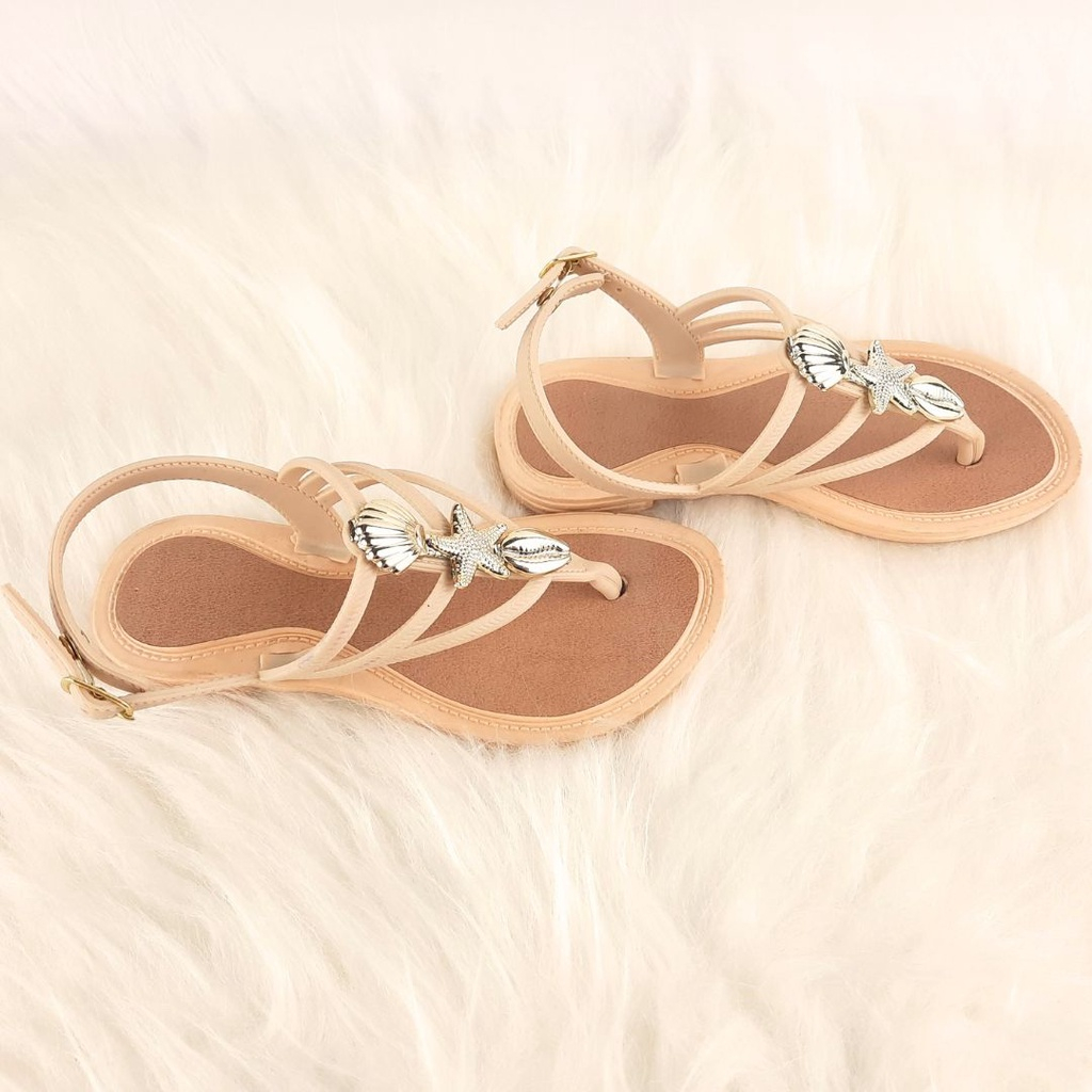 Sandália Feminina Rasteirinha C/ Tiras Finas Trançadas Confortável Nude