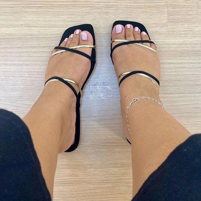 Sandalia Feminina Rasteirinha rasteira flat Tiras promoção Verão Moda Confortável (REF 3371)
